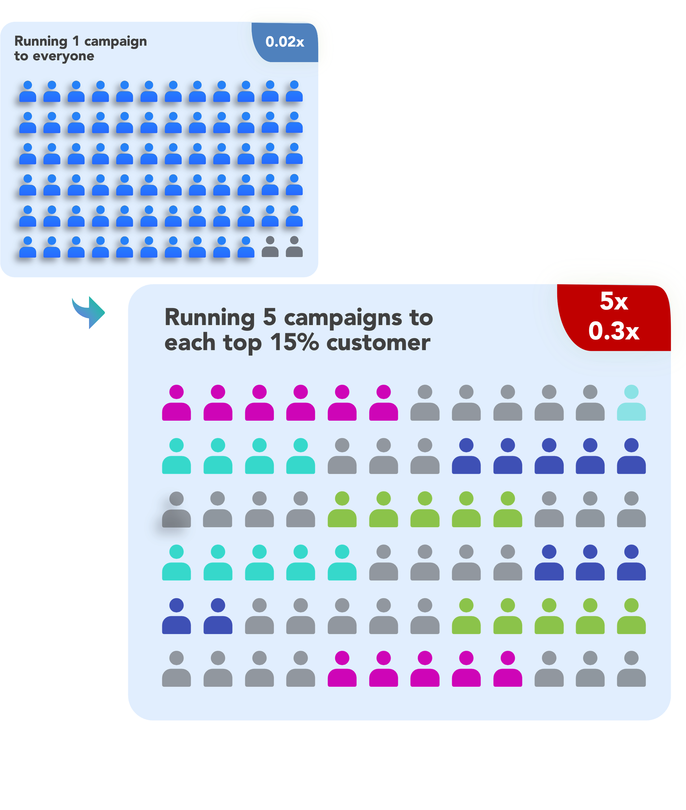 ML can define with 80-90% accuracy those on your customer base most ready to buy a particular product within a window of 30 days.